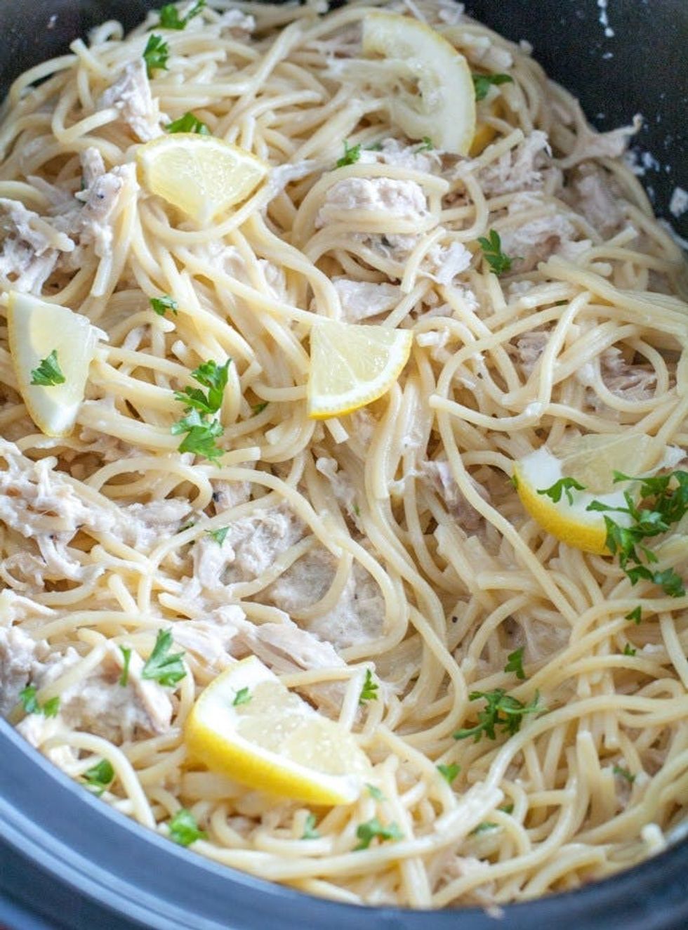 Slow Cooker Creamy Lemon Chicken Spaghetti: Creamy pasta is our go-to comfort food, but all that dairy can be a little heavy. A generous dose of lemon juice, zest, and thinly sliced lemon for garnish brighten things up. (via Food Lovin' Family)